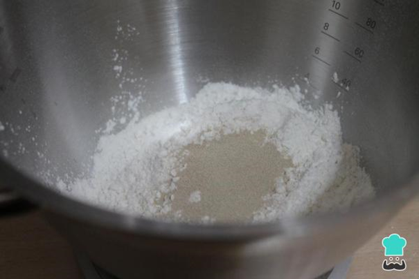 Dica: Se você preferir pode usar fermento biológico fresco, neste caso 15 gramas serão suficientes. Dissolva esse fermento na água morna e depois adicione na farinha.